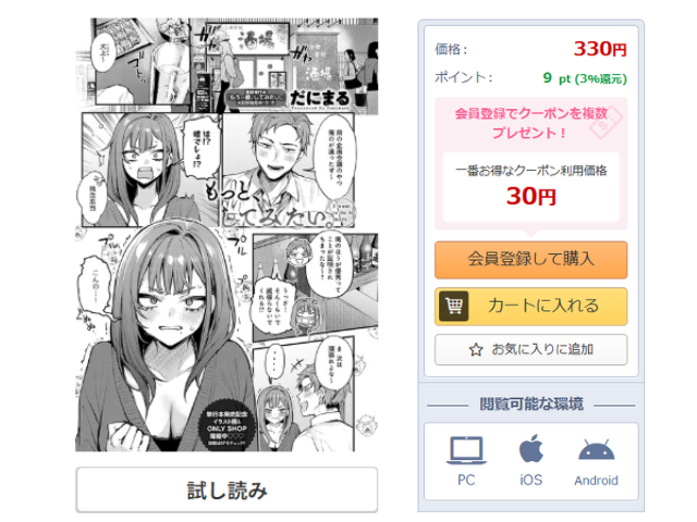 調査した結果、「もっと、してみたい。」は、最安値30円であるDLsiteが1番お得に読めるということが分かりました。